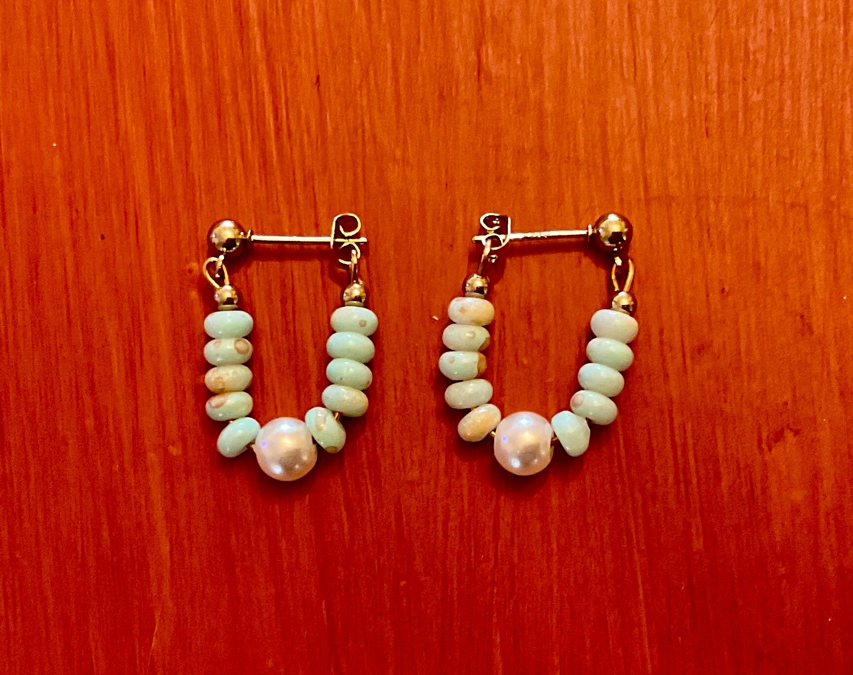 Natural stone beaded pearl earrings. 1 inch length by 5/8 width