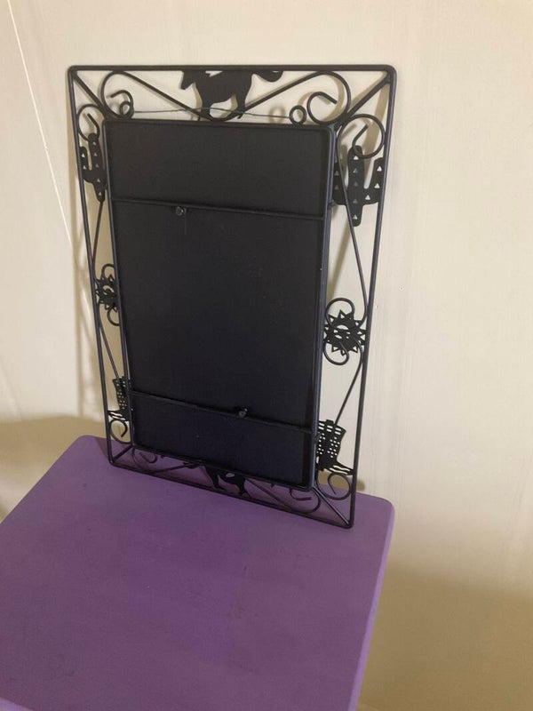 Country theme, black metal frame encasing the mirror.