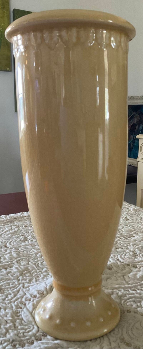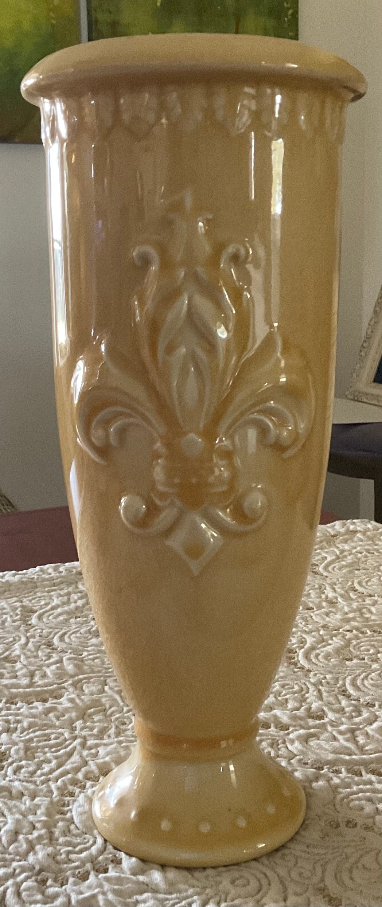 Embossed vase. 13 inches tall with a 4 inch throat opening.