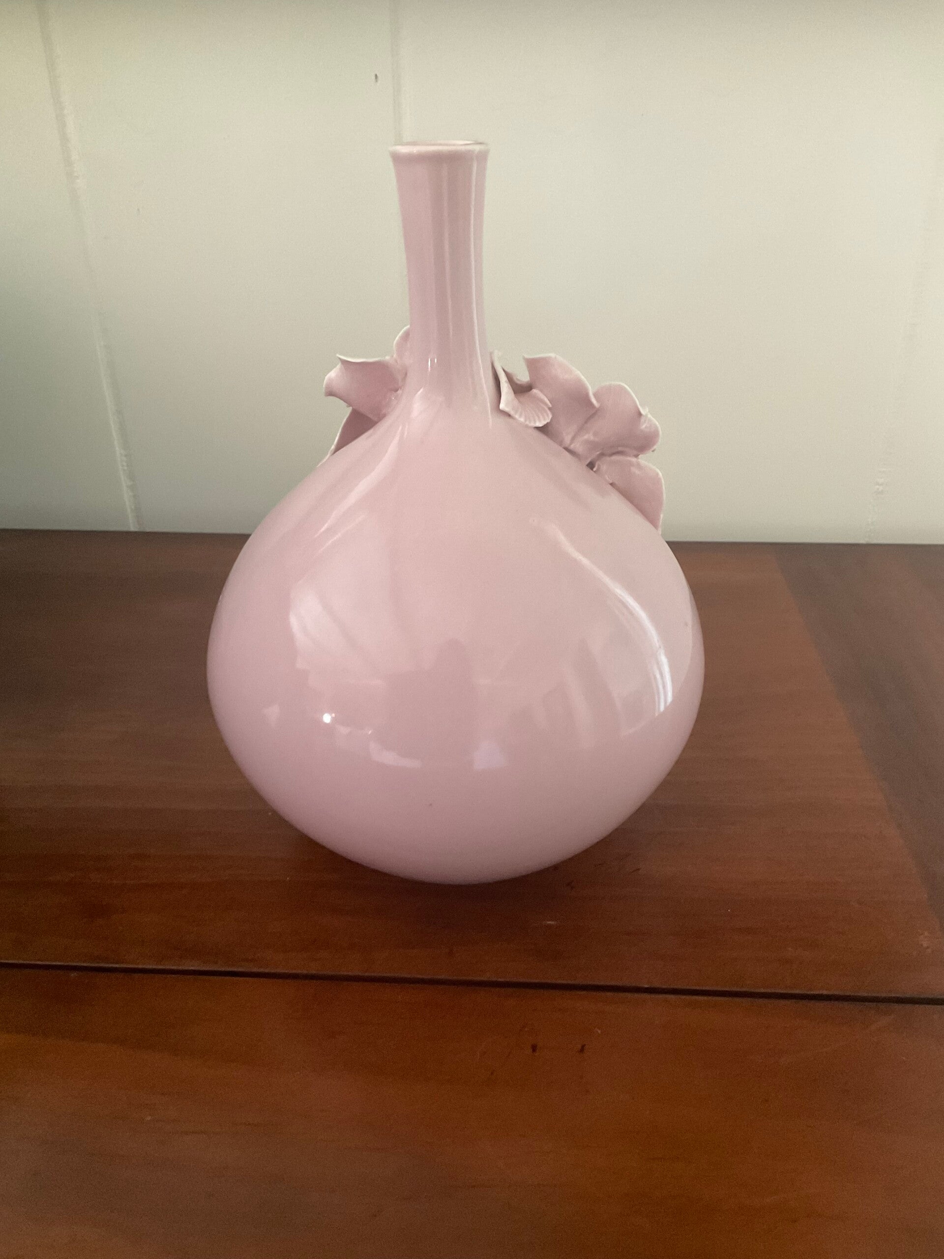 7 1/2 inches tall by 5 1/2 inch diameter, pink bud porcelain vase